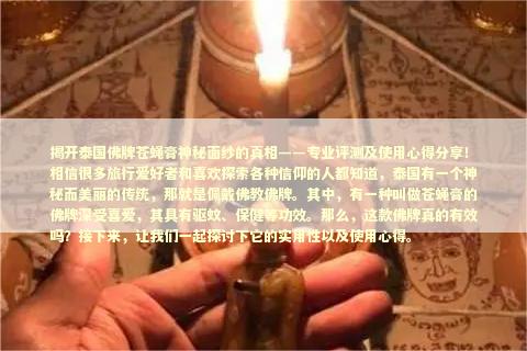 让我们一起探索泰国神秘法事背后的故事,了解其背后的文化和信仰。